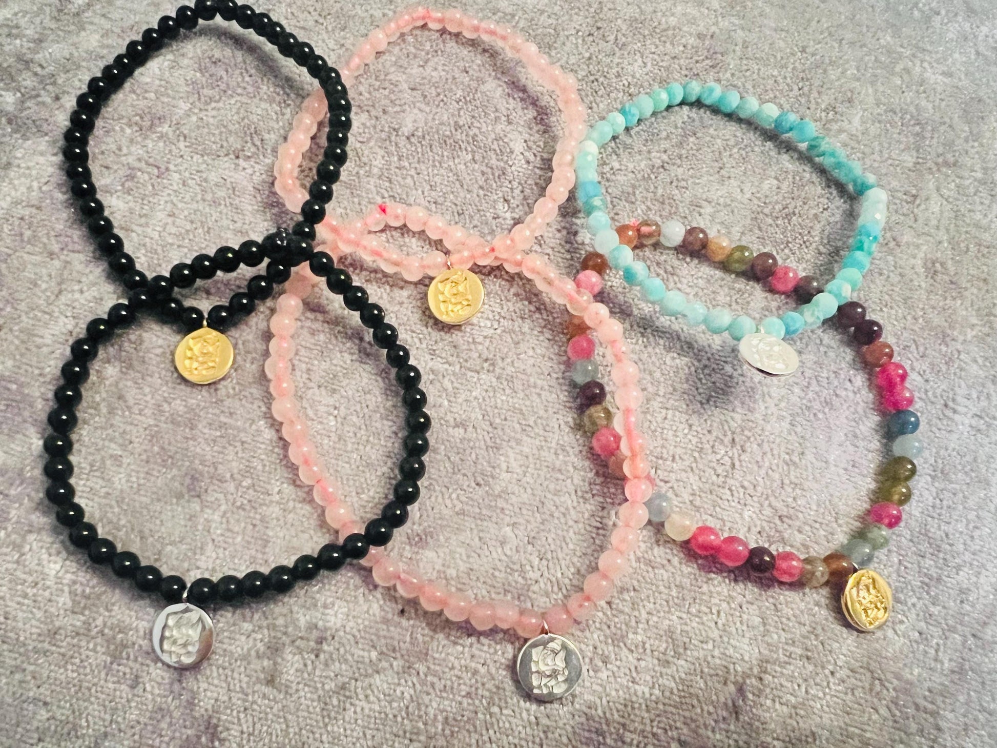 High-Quality Gemstones: Choose from a selection of premium gemstones like Amazonite, Black Onyx, Rose Quartz, and Multi Tourmaline, each carefully selected for their beauty and spiritual significance. 4mm beads