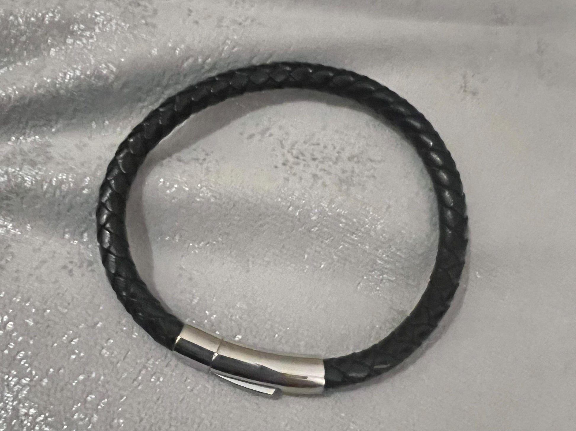 Men’s leather and stainless steel bracelets