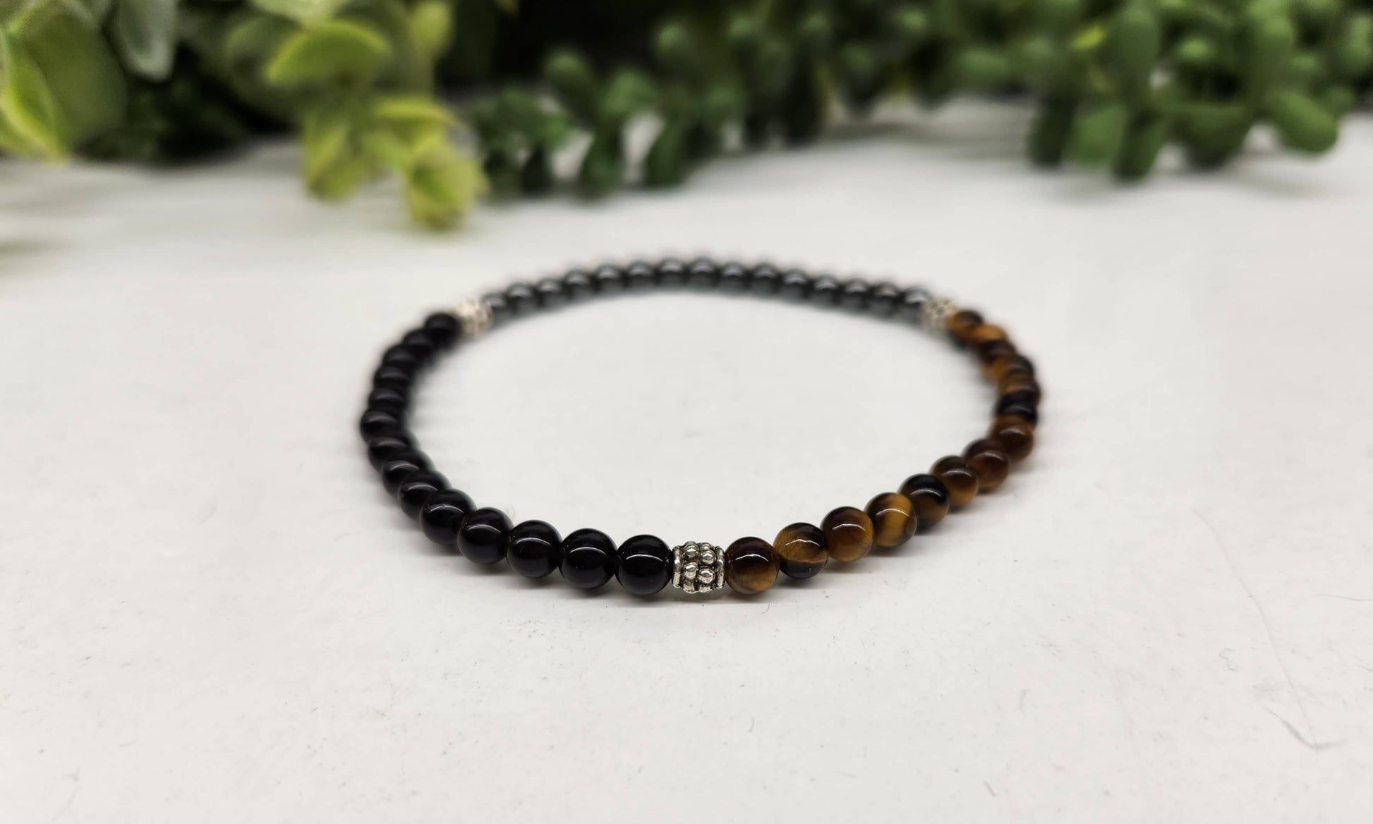 TRIPLE PROTECTION - Hematite, Yellow Tiger Eye and Black Obsidian Stretchable Bracelet in 4MM beads